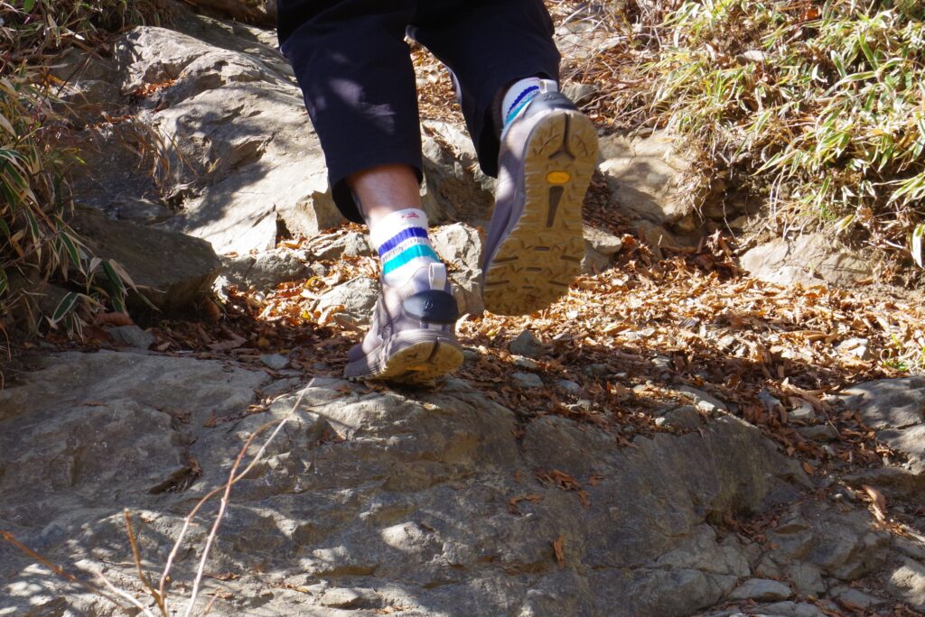 意外に下りの方が脚に来てしまうのでラグソールによるグリップは重要なんです。